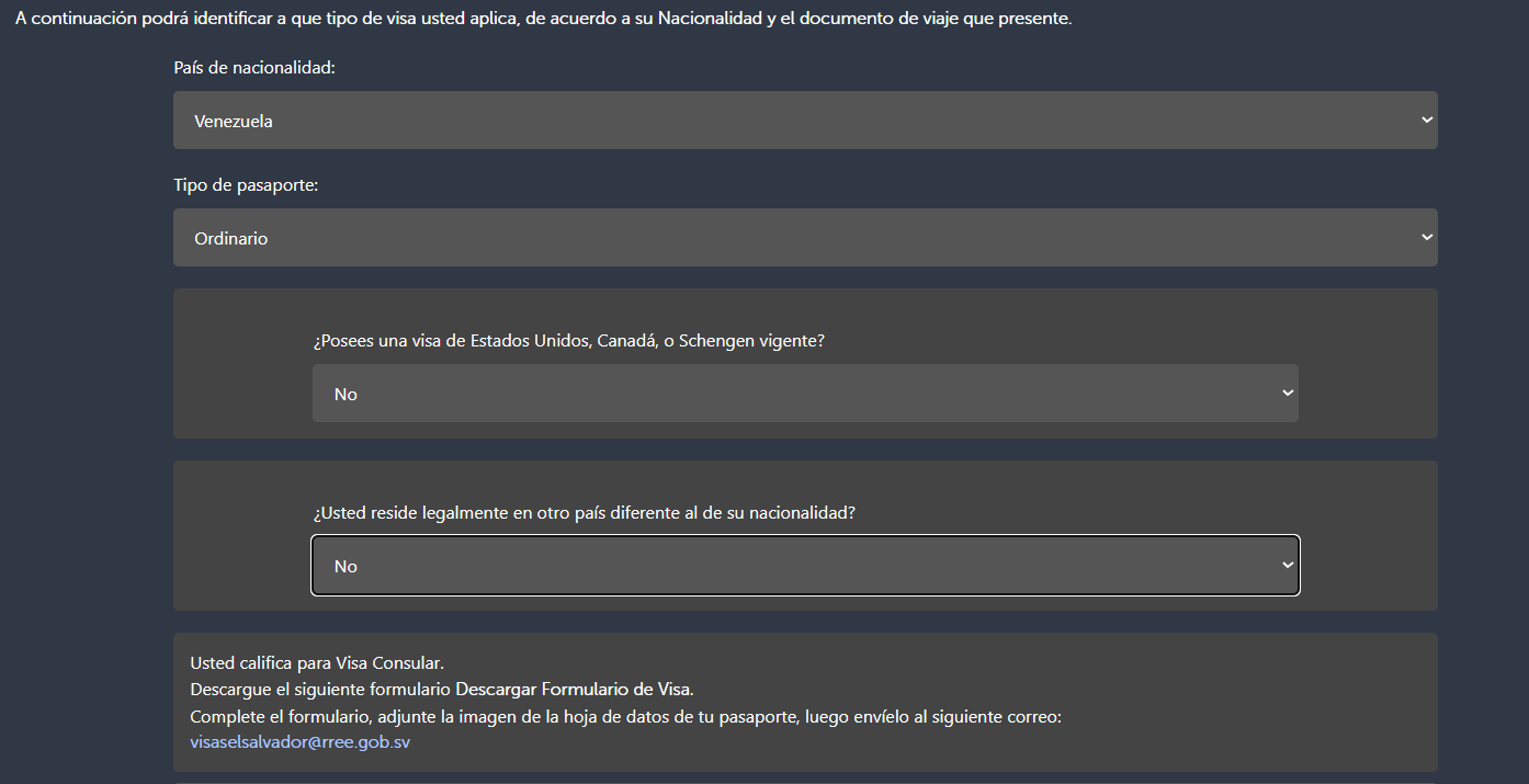El sitio web de Cancillería también dispone de un sitio de consulta en el apartado Servicios, sección de visas. Para ello, basta indicar el país de origen y el tipo de pasaporte disponible. El caso de los venezolanos es distinto de los otros dos. Al poner el país y el tipo de pasaporte (ordinario, para la gran mayoría), el sistema pregunta si tienes visa de Estados Unidos, Canadá o Schengen vigente. Esto último se refiere al espacio que comprenden los 25 países de la Unión Europea y cuatro asociados, también del Viejo Continente. Si la respuesta es afirmativa, el ciudadano venezolano no requiere visa. En caso contrario, el sistema aún pregunta si es residente en un país distinto a su nacionalidad. Si no es así, le indica la necesidad de una visa consular. Esta información también se reconfirmó con un ciudadano de ese país conocedor de la realidad migratoria.