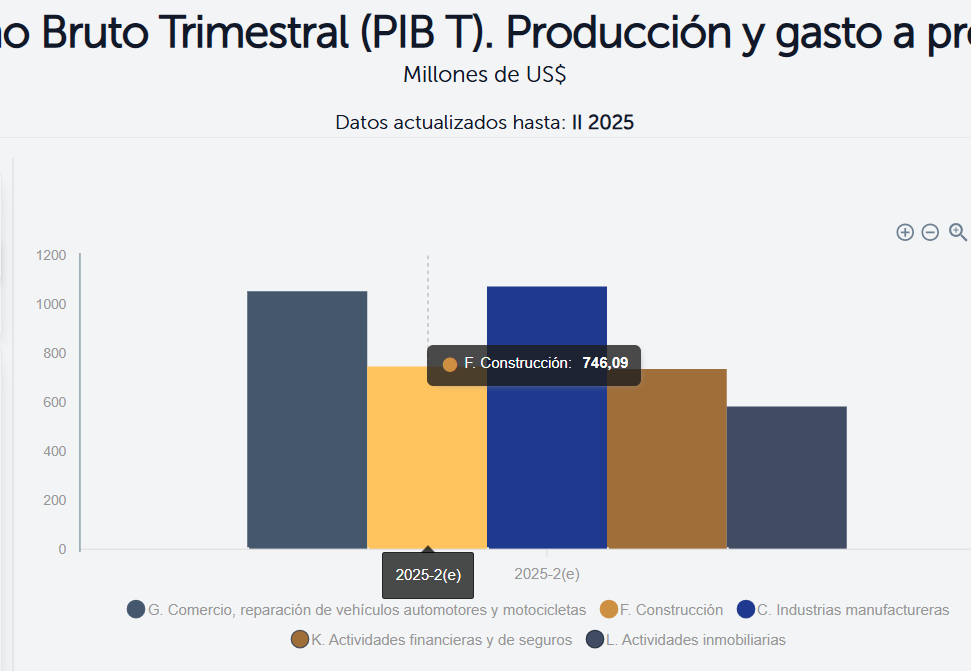 El sector de la construcción aportó $746 millones al PIB en el segundo trimestre lo que representó el 8% del total. Los rubros de la industria manufacturera y el comercio suman más a la economía. En concreto, en ese periodo, el primero generó $1,073 millones (11.6% del PIB) por los $1,054 millones (11.3%) que generó el otro. Por tanto, el sector construcción es el tercero que más aporta a la economía.