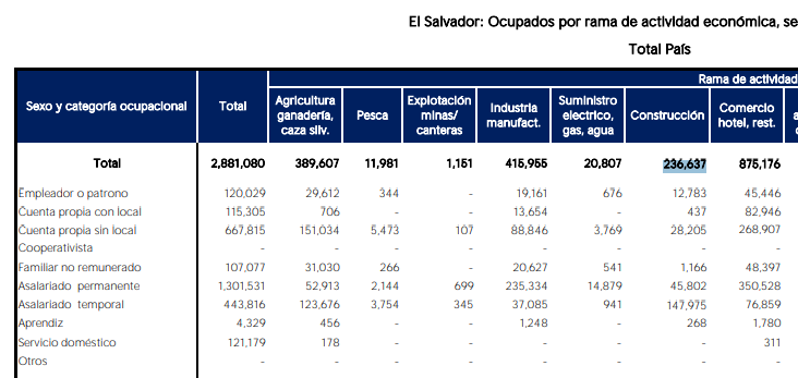 El Ministerio de Trabajo, en su informe “Diagnóstico de trabajadores independientes informales”, registra 81,336 en el sector mencionado en 2023. El BCR, en cambio, menciona algo más de 175,000 empleados en el año 2022. La Encuesta de Hogares y Propósitos Múltiples (EHPM) de 2024, también a cargo del banco y publicada el pasado 30 de septiembre, indica algo más de 236,000 trabajadores en la construcción de los que casi 148,000 son asalariados temporales.