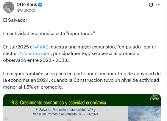 El economista Otto Boris lo indica así en un mensaje reciente X donde destaca el repunte de la construcción en 2025 frente a otros sectores deprimidos como el industrial y el agropecuario.