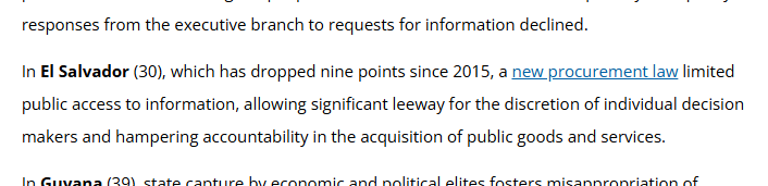 Entre las razones están una nueva ley de contrataciones que favorece la discrecionalidad y obstaculiza la rendición de cuentas. También, persiste la reserva de información de las instituciones, indica el informe.