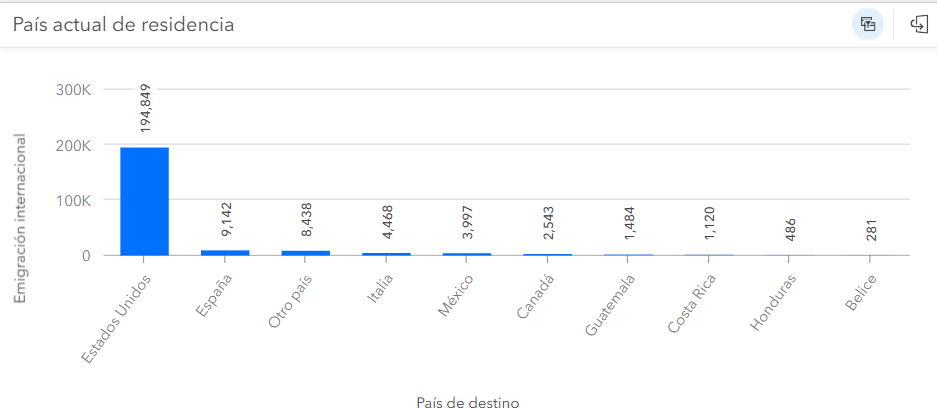 Una referencia adicional es el Censo de Población y Vivienda 2024. El documento registra el destino de la población que ha emigrado en los últimos diez años. Por supuesto, aparece Estados Unidos en primer lugar con 195,000 compatriotas y concentra al 85% del total. El resto se reparte entre los países ya mencionados y otros.