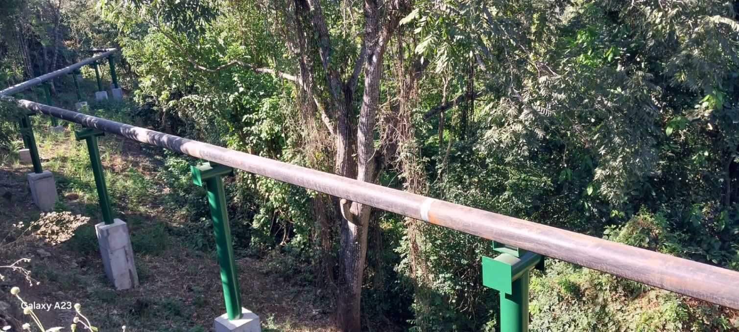 En una visita realizada a finales de diciembre al campo geotérmico de Chinameca, en las faldas de los volcanes Limbo-Pacayal, se observaron tramos de tuberías (sistema de acarreo) camino a los pozos que, según los vecinos, habían sido construidos en 2025 por personal de LaGeo.