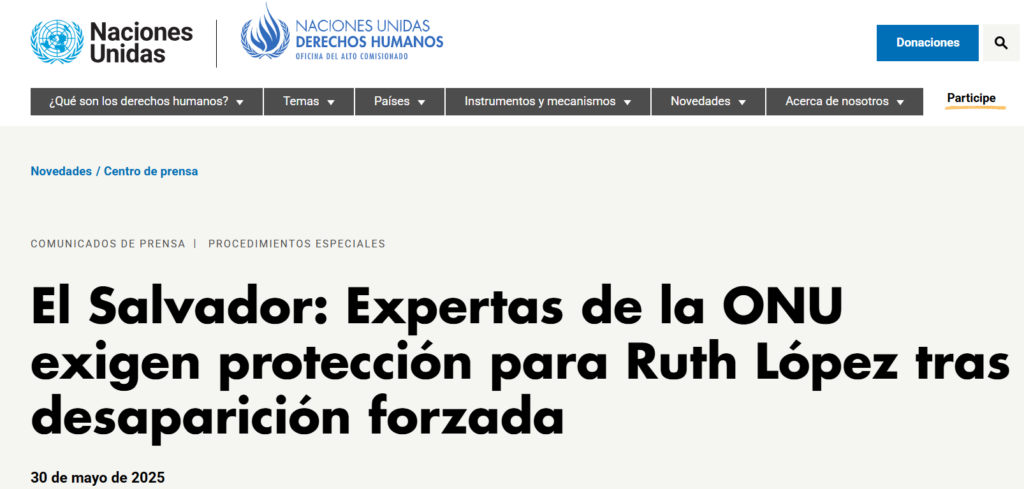 Comunicado de prensa de la ONU ante la captura de Ruth López.